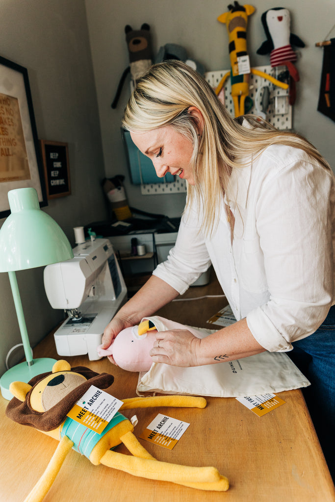 Softie will be made from antipill fleece, recycled fabrics, and poly cluster stuffing.