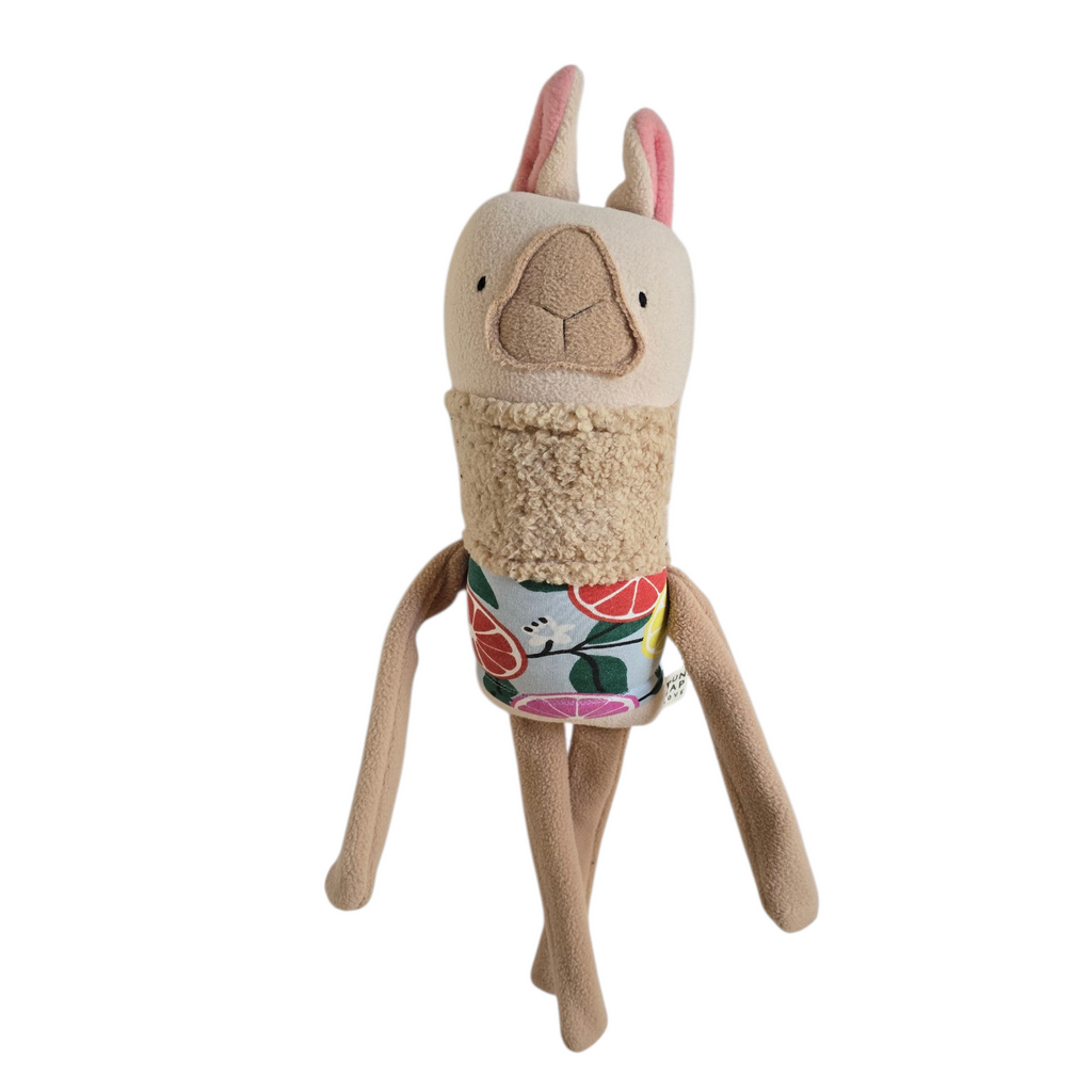 Lola measures approximately 24" long and is made with durable anti-pill fleece and recycled fabric for her top. Her eyes are hand embroidered and she is stuffed with cluster stuff to make her extra snuggly.